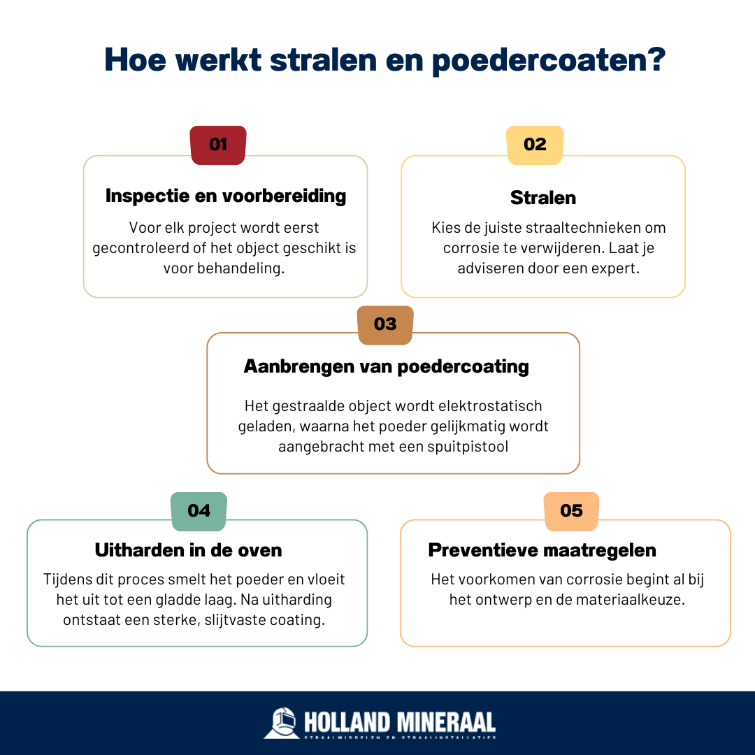 Tip: Vraag bij jouw coatingbedrijf altijd naar de combinatie van stralen en poedercoaten. Die twee gaan hand in hand voor het beste resultaat.
